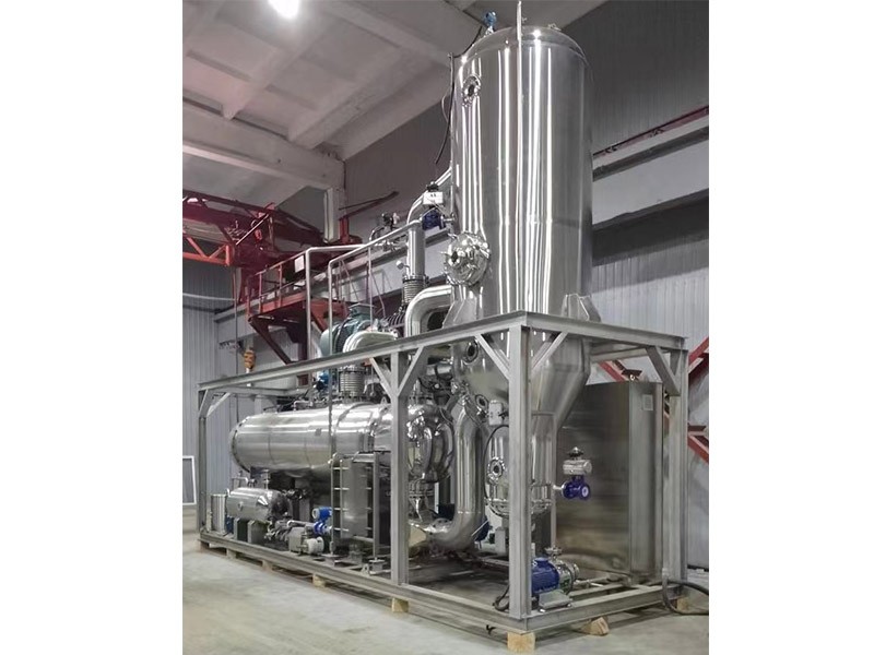 7、對(duì)于熱敏性物料可以配合使用真空泵,可以做到在接近絕壓的真空下進(jìn)行,從而實(shí)現(xiàn)低溫蒸發(fā),最低可以達(dá)到50℃蒸發(fā);